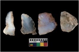 | Description / विवरण | There are n 4 utilized flake cores. There are multi directional irregular scar pattern on them. Three are tapering at one end and one has sharp edge. |