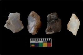 | Description / विवरण | There are n 4 utilized flake cores. There are multi directional irregular scar pattern on them. One is tapering at one end and three have blunted edges. |