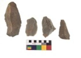 | Description / विवरण | There are n 4 utilized flake cores. There are multidirectional irregular dominant scar pattern on both dorsal and ventral face of the flake cores. One is tapering at one end and three have sharp edges. |