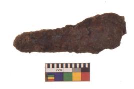 | Description / विवरण | Fragment of Iron Knife. it is broken rectangular shape knife blade. It is rusted in present condition |