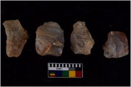 | Description / विवरण | There are n 4 flakes tool; there are large flakes with sides trimmed, Marks of secondary flaking are present on the both the faces.The dorsal is relatively flat. One is pointed functional top. |
