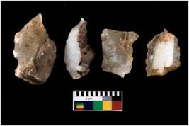 | Description / विवरण | There are n 4 ; worked utilized flakes; there are multidirectional irregular scar pattern on both dorsal and ventral face of the flakes. Two are tapering at one end. One is having a flat base. All are having sharp edges. |
