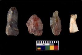 | Description / विवरण | There are n 4 cores; there are multidirectional irregular scar pattern on them. Some of them are tapering at one end. 2 chert and 2 quartz |