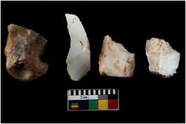 | Description / विवरण | There are n 4 ; worked utilized flakes; there are multidirectional irregular scar pattern on both dorsal and ventral face of the flakes. One is are tapering at one end. All are having sharp edges. |