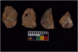 | Description / विवरण | There are n 4 flakes tool; there are large flakes with sides trimmed, Marks of secondary flaking are present on the both the faces.The dorsal is relatively flat. One is pointed functional top. |