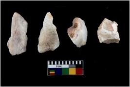 | Description / विवरण | There are n 4 utilized flake cores. There are multidirectional irregular scar pattern on both dorsal and ventral face of the flake cores. One has sharp edges and three have blunted edges. |