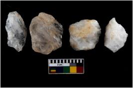 | Description / विवरण | There are n 4 utilized flake cores. Two have blunted edges and two have round edges. |