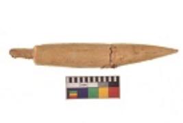 | Description / विवरण | Specimen having smooth surface and honey-brown in colour. Straight, biconical body with a comparatively thinner conical tang, highly polished and broad oval in section. |