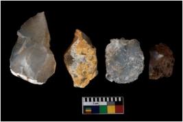 | Description / विवरण | There are n 4 ; worked utilized flakes; there are multidirectional irregular scar pattern on both dorsal and ventral face of the flakes. One is are tapering at one end. All are having sharp edges. |