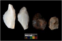 | Description / विवरण | There are n 4 ; worked utilized flakes; there are multidirectional irregular scar pattern on both dorsal and ventral face of the flakes. Two are tapering at one end. All are having sharp edges. |