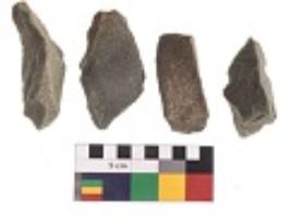 | Description / विवरण | There are n 4 utilized flake cores. There are multidirectional irregular dominant scar pattern on both dorsal and ventral face of the flake cores. Two are tapering at one end and two have sharp edges. |