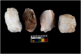 | Description / विवरण | There are n 4 utilized flake cores. Three are tapering at one end and one has blunted edges. |