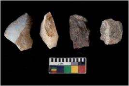 | Description / विवरण | There are n 4 utilized flake cores. There are multi directional irregular scar pattern on them. Two are tapering at one end and two have sharp edges. |