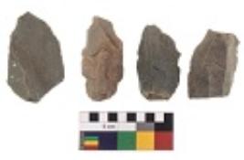 | Description / विवरण | There are n 4 utilized flake cores. There are multidirectional irregular dominant scar pattern on both dorsal and ventral face of the flake cores. Two are tapering at one end and two have sharp edges. |