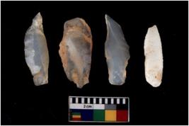 | Description / विवरण | There are n 4 of utilized worked Blades and show multidirectional irregular scar pattern on both dorsal and ventral sides. They have sharp edges. |
