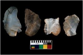| Description / विवरण | There are n 4 ; worked utilized flakes; there are multidirectional irregular scar pattern on both dorsal and ventral face of the flakes. Two are tapering at one end. All are having sharp edges. |