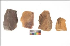 | Description / विवरण | Specimen of a cores with several broad fluted marks and some of them are tapering at one end. |