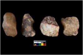 | Description / विवरण | There are n 4 utilized flake cores. There are multi directional irregular scar pattern on them. Two have blunted edges and two have round edges. |