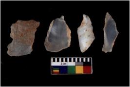 | Description / विवरण | There are n 4 flakes tool; there are flakes with sides trimmed, Marks of secondary flaking are present on the both the faces.The dorsal is relatively flat. |