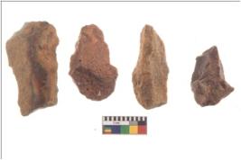 | Description / विवरण | There are n 4 flakes tool; there are large flakes with sides trimmed, Marks of secondary flaking are present on the both the faces. The dorsal is relatively flat. |