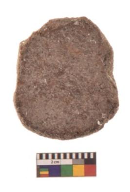 | Description / विवरण | A partially broken specimen of red ware disc with rounded and smooth edge and flat surface. |