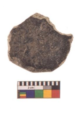| Description / विवरण | A partially broken specimen of black ware disc with rounded and smooth edge and flat surface. |
