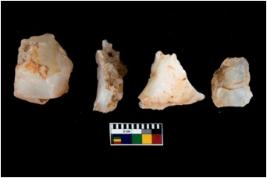 | Description / विवरण | There are n 4 utilized flake cores. There are multi directional irregular scar pattern on them. Three have flat base and one has blunted edge. |