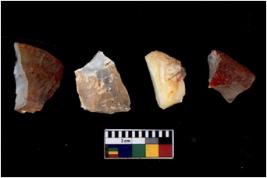 | Description / विवरण | There are n 4 cores; there are multidirectional irregular scar pattern on them. Some of them are tapering at one end. Most of them having blunt edges. 3 chert and 1 quartz |