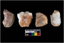 | Description / विवरण | There are n 4 utilized flake cores. There are multi directional irregular scar pattern on them. Three have blunted edges and one has round edge. |