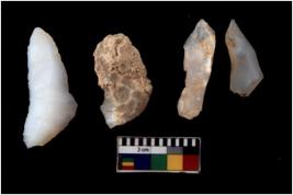 | Description / विवरण | There are n 4 flakes tool; there are large flakes with sides trimmed, Marks of secondary flaking are present on the both the faces. |