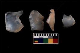 | Description / विवरण | There are n 4 flakes tool; there are flakes with sides trimmed, Marks of secondary flaking are present on the both the faces.The dorsal is relatively flat. |