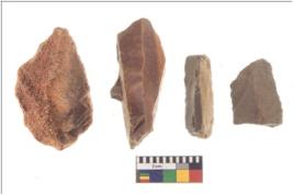| Description / विवरण | There are n 4 flakes tool; there are large flakes with sides trimmed, Marks of secondary flaking are present on the both the faces. The dorsal is relatively flat. One is pointed functional top. |