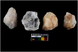 | Description / विवरण | There are n 4 utilized flake cores. Two have blunted edges and two have round edges. |