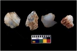 | Description / विवरण | There are n 4 cores; there are multidirectional irregular scar pattern on them. 2 chalcedony and 2 quartz |