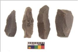 | Description / विवरण | There are n 4 flakes tool; there are large flakes with sides trimmed, Marks of secondary flaking are present on the both the faces. The dorsal is relatively flat. |