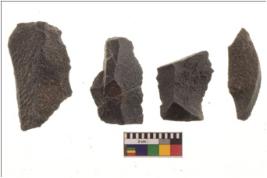 | Description / विवरण | There are n 4 flakes tool; there are large flakes with sides trimmed, Marks of secondary flaking are present on the both the faces. Some of these are pointed functional top. |