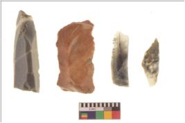| Description / विवरण | There are n 4 flakes tool; there are large flakes with sides trimmed, Marks of secondary flaking are present on the both the faces. The dorsal is relatively flat. |