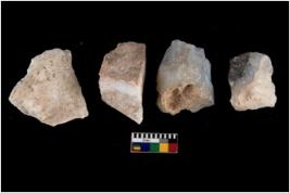 | Description / विवरण | Specimen of a cores with several broad fluted marks. Some of them are tapering at one end. |