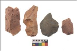 | Description / विवरण | There are n 4 flakes tool; there are large flakes with sides trimmed, Marks of secondary flaking are present on the both the faces. The dorsal is relatively flat |
