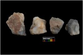 | Description / विवरण | Specimen of a cores with several broad fluted marks. Some of them are tapering at one end. |