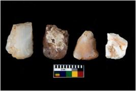 | Description / विवरण | There are n 4 utilized flake cores. There are multi directional irregular scar pattern on them. Two have blunted edges and two have round edges. |