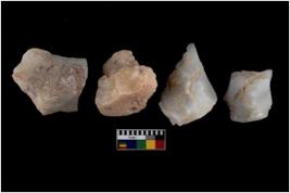 | Description / विवरण | Specimen of a cores with several broad fluted marks. Some of them are tapering at one end. |