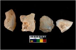 | Description / विवरण | There are n 4 utilized flake cores. There are multi directional irregular scar pattern on them. Three have blunted edges and one has round edge. |