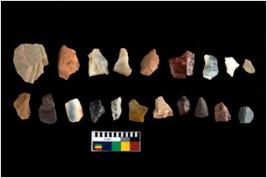 | Description / विवरण | There are n 20 objects; among them five are made up of quartz and fifteen are made up of chert. Some are tapering at one end.All are having sharp edges. Some Chert have is having groove marks. |