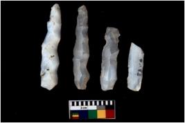 | Description / विवरण | There are n 4 Flake tool; There are multidirectional irregular scar pattern on them. few have blunt edges, Some of them are tapering at one end |
