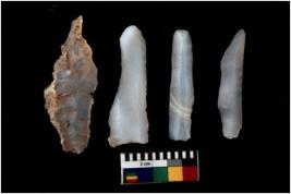| Description / विवरण | There are n 4 flakes tool; there are large flakes with sides trimmed, Marks of secondary flaking are present on the both the faces. |