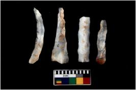 | Description / विवरण | There are n 4 flakes tool; there are large flakes with sides trimmed, Marks of secondary flaking are present on the both the faces. |