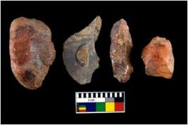 | Description / विवरण | There are n 4 utilized flake cores. Out of them one is made up of Chert and three are made up of Chalcedony. There are multi directional irregular scar pattern on them. Three are tapering at one end and one has blunted edge. |