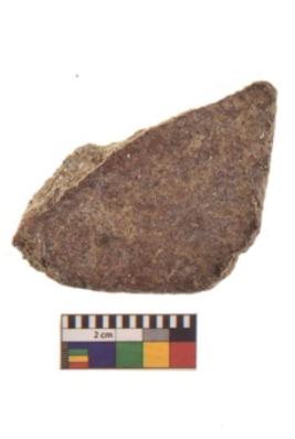 | Description / विवरण | Specimen of ground disc hopscotch made from a red ware. It has jagged edges with sign of chipping. It is rounded in shape. |