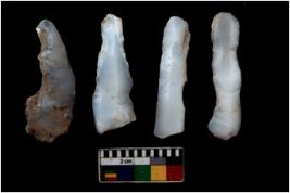 | Description / विवरण | There are n 4 Flake tool; There are multidirectional irregular scar pattern on them. few have blunt edges, Some of them are tapering at one end |